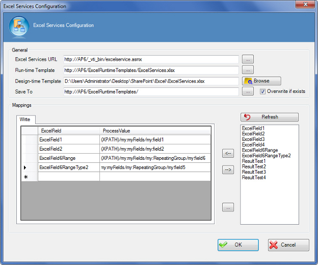 Once you enter the Excel template file name in the Design-time Template box, the Named Fields box is populated with all the named fields from the Excel sheet.