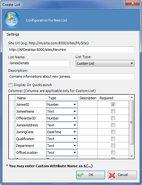 in the List Type field. Custom List is a built-in SharePoint list template.