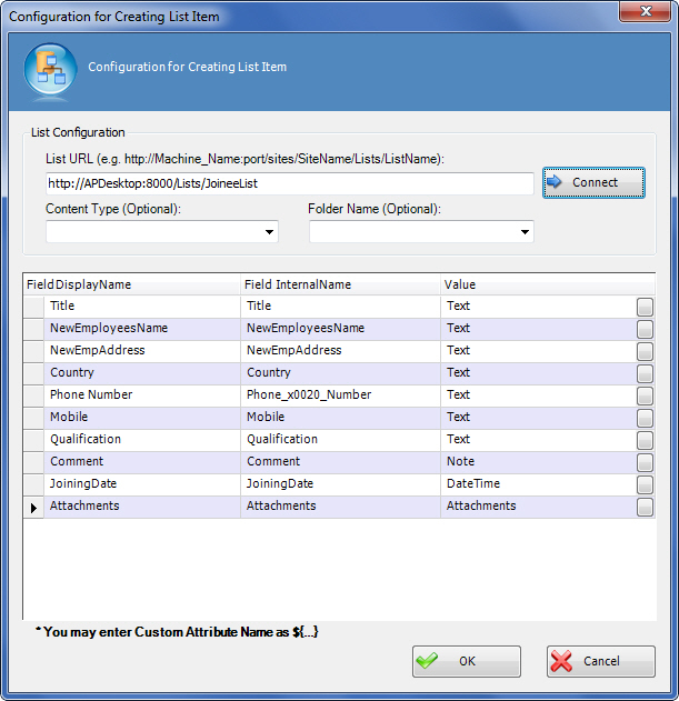 - Specifies the internal names of the SharePoint columns for the specified list or library.