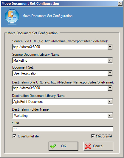 Specifies the source and destination for moving a document set from