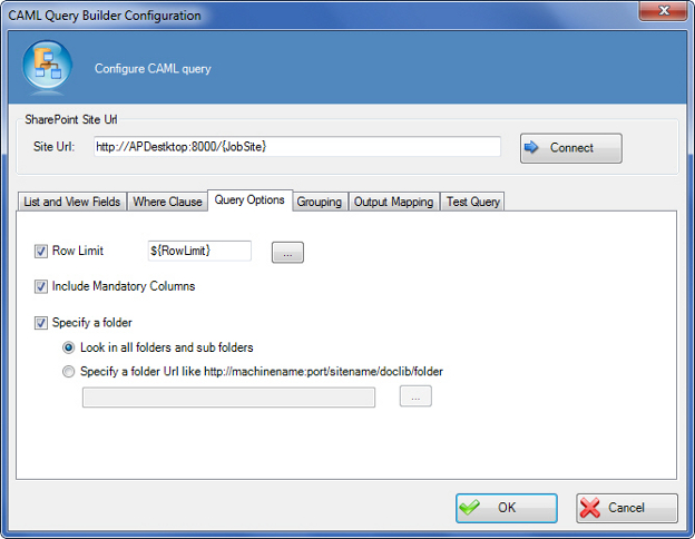 - Specify a folder Url - The CAML query is executed only in the specified folder.