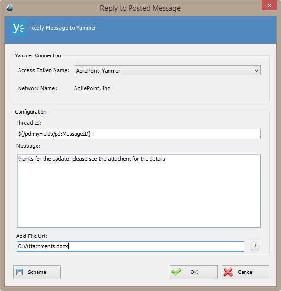 Post a reply to a specified message thread in Yammer.