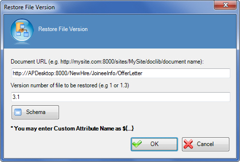 Specifies a version to restore for a SharePoint