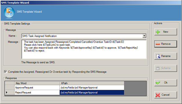 - On the SMS Template Wizard, do one of the following: