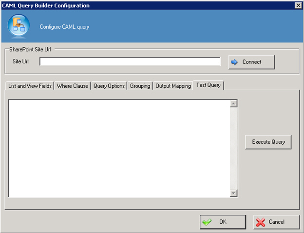 - On the CAML Query Configuration field, click the Ellipses button.