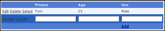Button can be added, updated or deleted by setting the CommandName. Without coding in the event of RowUpdated and RowDeleted, WFGridView will save the changes to the data source automatically.