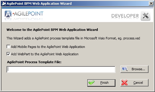 | AgilePoint Process Template File | Specifies the process model you want to associate with the web application.