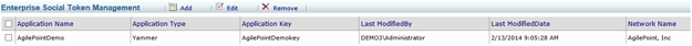 Displays and manages the list of enterprise social tokens. These tokens enable you to connect to