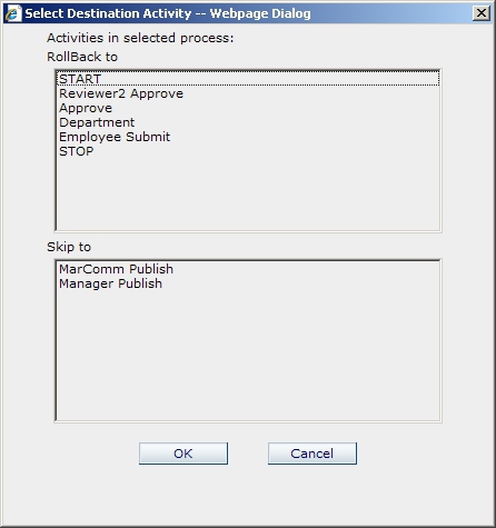 Rollback & Skip. The Select Destination Activity page