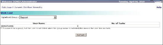 Workload Balancing is a tool for viewing information associated with the Work Load Balance Agile Work, where it is shown, the number of global tasks assigned to a user in a particular group.