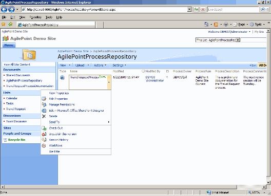 AgilePoint Envision and in SharePoint, you can now open the process repository