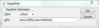 The rich text controls for the Email Template Wizard come from a third-party vendor and use typical, industry-standard behavior. When creating or editing a hyperlink that includes a custom attribute, if no protocol is present in the URL field, the control adds the default prefix about: to the URL.