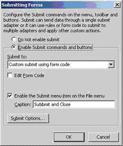 After enabling the Submit button, you can customize the naming convention of the form by modifying the AgilePointSumbitAndClose() function using the built in Microsoft Script Editor in InfoPath.