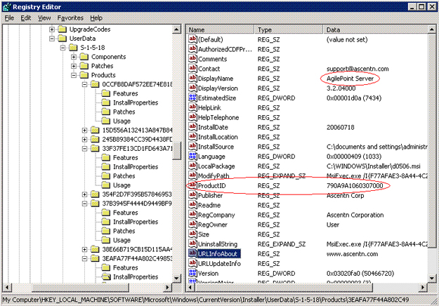 An alternative solution to finding the license key associated with a particular installed AgilePoint component is via the registry as is detailed below.