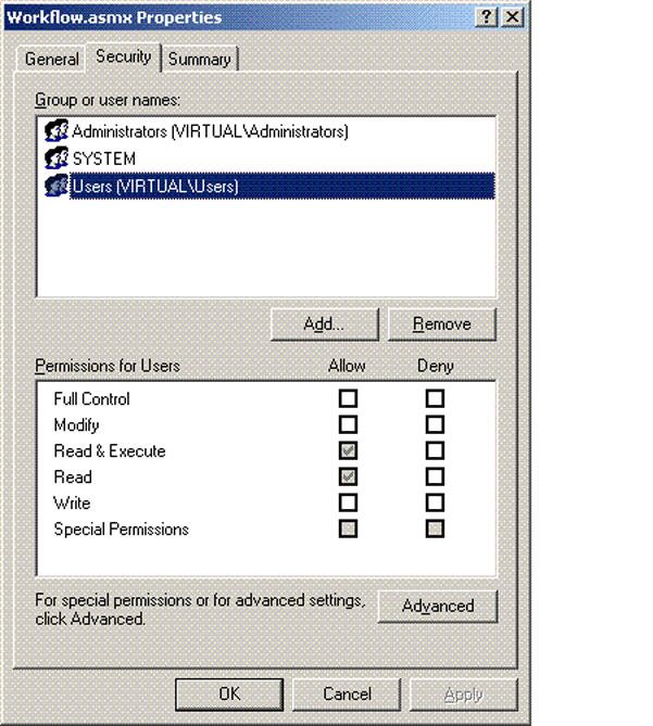 For example, to check the settings for the "Workflow.asmx" file mentioned above, you would do the following: