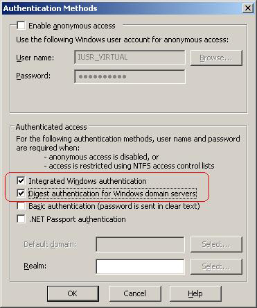 both Windows Integrated authentication and Digest authentication for the IIS web applications for AgilePoint Server and AgilePoint Enterprise Manager (or the entire web site, if desired):
