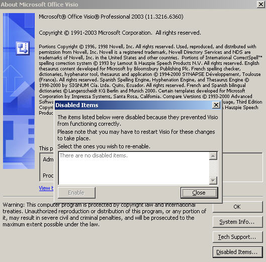 The AgilePoint Envision Visio Add-in has been disabled.