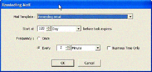 In the "Reminding Mail" dialog (see below), use the "Business Time Only" check box to configure whether reminders will be sent outside of business hours.
