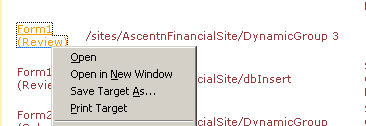Unlike the actual document or form library which you can use the option of 'Save Target As...' to save the document or form, the document link does not refer to the actual link to the document, instead it is associated with a JavaScript call. Therefore, trying to use the 'Save Target As...' option will return the above error in which the document cannot be saved here.