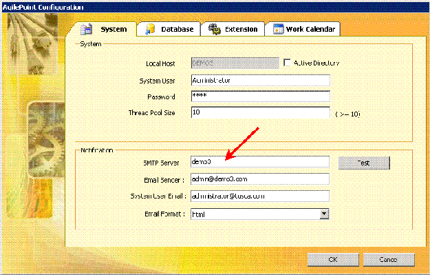 SMTP and Database is configured via the AgilePoint Server Configuration.