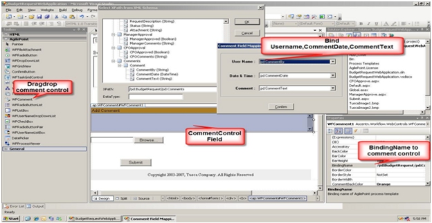 <ap:WFComment ID="WFComment1" runat="server" BarColor="SteelBlue"BarHeight="1px" BindingName="/pd:BudgetRequest/pd:Comments" CommentBackColor="Orange" CommentCaption="Add Comment" CommentFontSize="Small" CommentListBackColor="Orange" CommentListCaption="Comment History" CommentListTitleAlign="Left" CommentTitleAlign="Left" CommentWrap="False" CustomFormat="{0} by {1}" Height="100px" HistoryCommentBackColor="White" MappingComment="pd:CommentText" MappingDate="pd:CommentDate" MappingName="pd:CommentBy" OuterXmlTemplate="PHBkOkNvbW1lbnRzIHhtbG5zOnBkPSJodH RwOi8vd3d3LmFzY2VudG4uY29tL3Byb2Nl c3Nlcy5CdWRnZXRSZXF1ZXN0Ij48cGQ6Q29tbWVudD48cGQ6Q 29tbWVudEJ5PlN0cmluZzwvcGQ6Q29tbWVudEJ5 PjxwZDpDb21tZW50RGF0ZT5EYXRlVGltZTwvcGQ6Q29tbWVudERh dGU PHBkOkNvbW1lbnRUZXh0PlN0cmlu ZzwvcGQ6Q29tbWVudFRleHQ PC9wZDpDb21tZW50PjwvcGQ6Q29tbWVudHM " Width="101%" style="margin-bottom:10px" />
