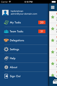 Displays the menu options on AgilePoint Mobile Dashboard app.
