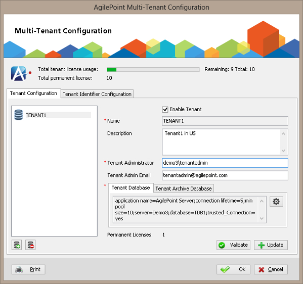 - AgilePoint Multi-Tenant Configuration Window - Tenant Identifier Configuration Tab