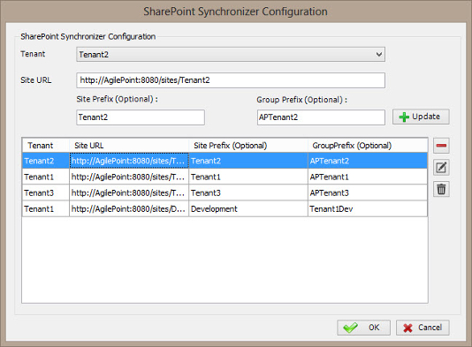 - Modifies the selected row from the SharePoint groups synchronization configuration list.