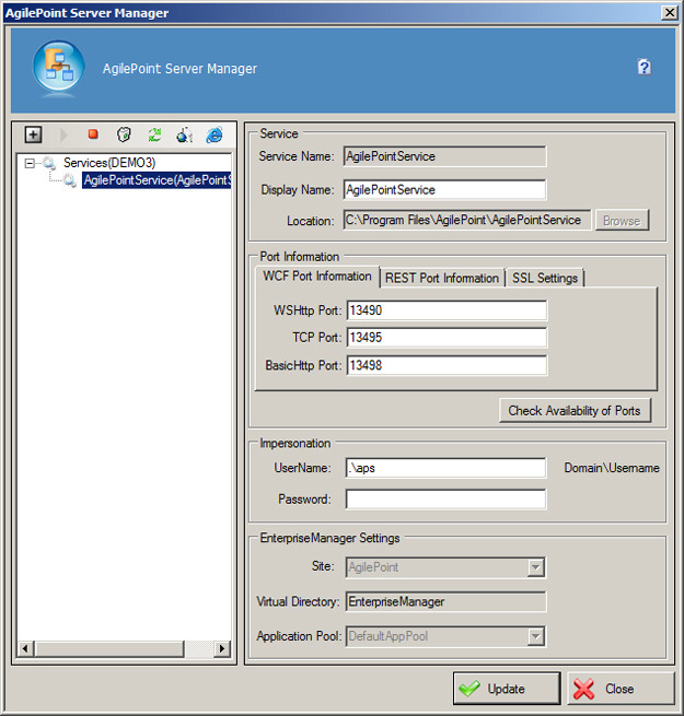 - A free, unique port AgilePoint Server can use for WSHttp binding.